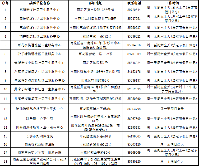 雨花區(qū)帶狀皰疹疫苗惠民接種門診信息表