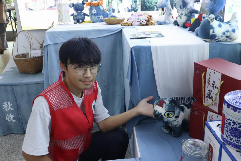 實(shí)操環(huán)節(jié),學(xué)生們在團(tuán)隊(duì)指導(dǎo)下嘗試基礎(chǔ)扎花技法。從最初的生疏到逐漸掌握“捆扎法”“夾板法”等技巧,孩子們用素布創(chuàng)造出了花朵、山水等圖案。當(dāng)布料浸入染缸的瞬間,學(xué)生們屏息凝視,見證著染料滲透擴(kuò)散形成的獨(dú)特紋理?!霸瓉韨鹘y(tǒng)工藝可以這么酷!”小朋友舉著自己染制的方巾興奮的說到。