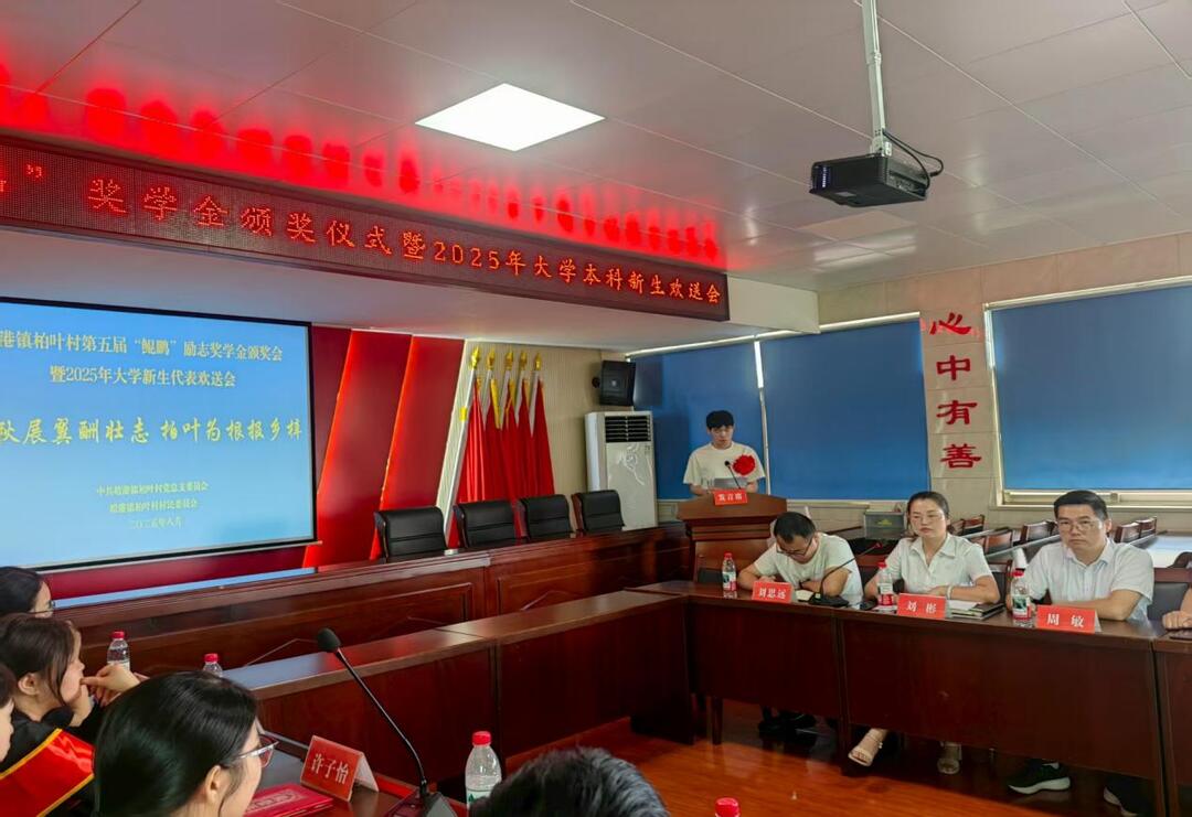 崇文重教之風(fēng),蔚然成風(fēng);育才樹人之志,代代相傳。2025年8月22日上午,長沙市望城區(qū)靖港鎮(zhèn)柏葉村三樓大會議室隆重舉行第五屆“鯤鵬”勵志獎學(xué)儀式暨2025年大學(xué)新生歡送會。鎮(zhèn)領(lǐng)導(dǎo)、駐村第一書記、支村兩委成員、大學(xué)新生及家長等齊聚一堂,共同見證延續(xù)人才薪火時刻。