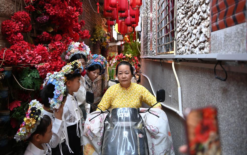 位于泉州灣入海口的蟳埔村,曾是以漁業(yè)為主的小村落,如今憑借以“簪花圍”為代表的蟳埔女習(xí)俗火爆出圈,2024年接待游客超過(guò)850萬(wàn)人次。穿梭于蟳埔村的蚵殼厝之間,隨處可見(jiàn)簪發(fā)戴花、身著傳統(tǒng)服飾的游客,宛如移動(dòng)的花海,將整座村莊點(diǎn)綴成生動(dòng)的民俗畫(huà)卷。