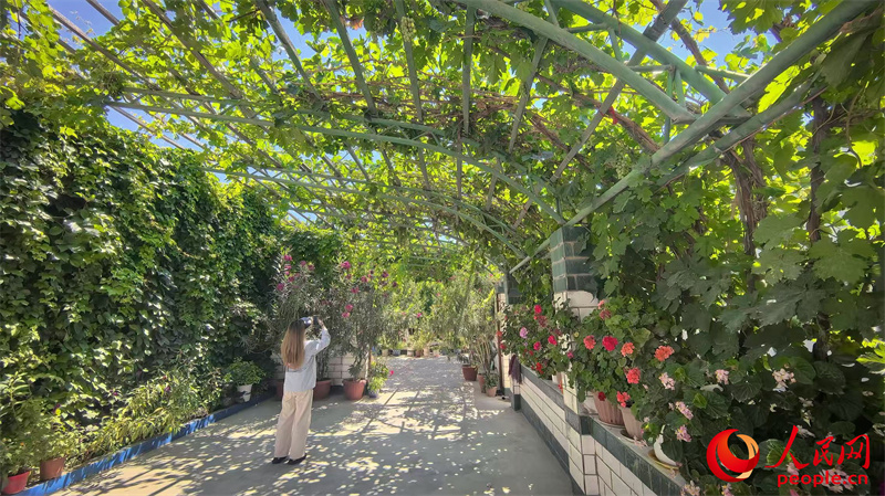 康村民宿院子里的葡萄熟了,鮮花正開(kāi)得艷麗。人民網(wǎng)記者 陳新輝攝