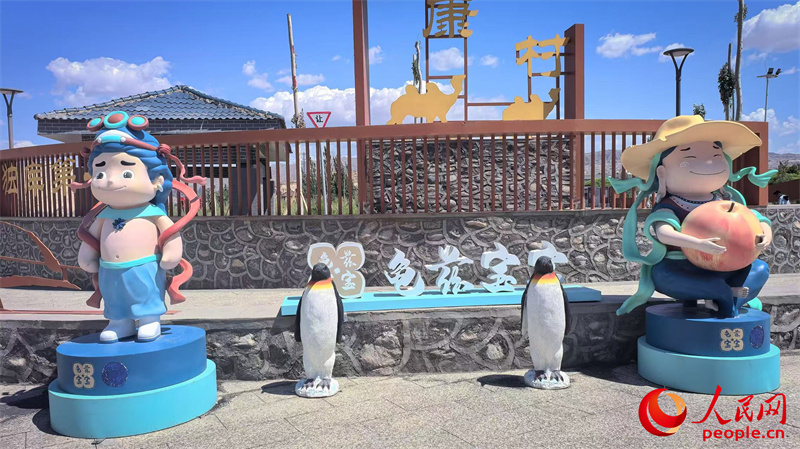 康村文化長(zhǎng)廊旁的龜茲寶寶造型。人民網(wǎng)記者 陳新輝攝