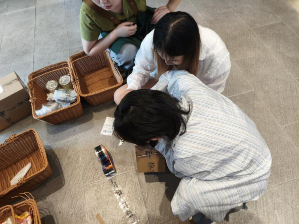 “點(diǎn)亮星城”團(tuán)隊與線下店鋪一起分揀打包
