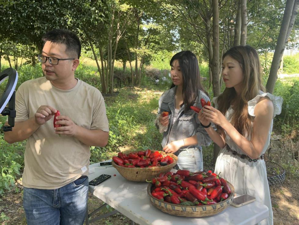 面對持續(xù)30-40℃的高溫天氣,胡欣科學(xué)制定實踐計劃,合理分配團(tuán)隊資源。她帶領(lǐng)電商專業(yè)同學(xué)深入分析農(nóng)產(chǎn)品數(shù)據(jù),指導(dǎo)藝術(shù)專業(yè)同學(xué)完成拍攝剪輯,充分發(fā)揮跨專業(yè)協(xié)作優(yōu)勢。在黃興鎮(zhèn)辣椒田進(jìn)行露天直播時,她一邊沉著應(yīng)對高溫導(dǎo)致的設(shè)備故障,一邊流暢講解產(chǎn)品特點(diǎn),最終圓滿完成2場原產(chǎn)地直播,累計觀看超1000人次,帶動銷售額300余元。隊員孫惠評價說:“胡隊總是沖在最前面,她的專業(yè)精神和負(fù)責(zé)態(tài)度感染著每個人?!?/p>