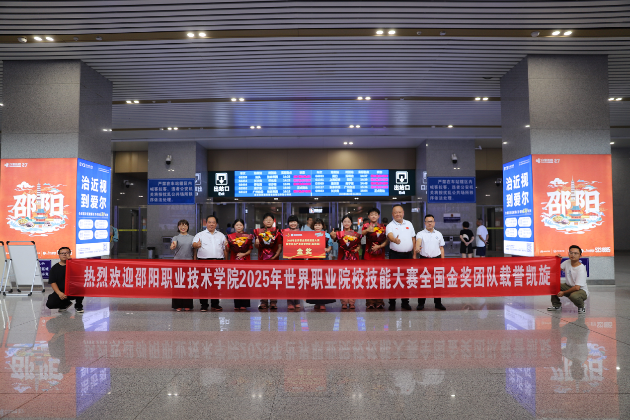 指導(dǎo)老師與參賽選手凱旋之際,學(xué)校在邵陽南站出站區(qū)域舉行了一場(chǎng)隆重、簡(jiǎn)潔而溫馨的現(xiàn)場(chǎng)歡迎儀式,黨委書記鄧政、校長(zhǎng)許洪范,黨委委員、副校長(zhǎng)王芳出席,教務(wù)科研處、生物工程學(xué)院部分教職工代表參加。
