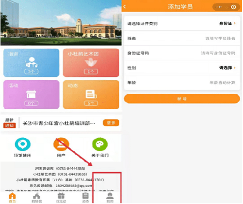 第三步:登錄系統(tǒng)后,點擊我的“添加學(xué)員”填寫學(xué)員相關(guān)信息,需要填寫學(xué)員的姓名、性別、年齡(根據(jù)身份證號碼自動計算)、身份證號碼等。