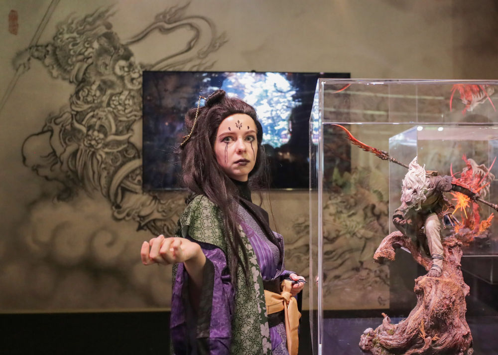 在一間展廳中央,一處長20余米的方形展區(qū)格外醒目。四周以幕布圍合,墻面繪有水墨畫,正面寫著“影之刃零”四個大字。等待入場試玩的隊伍已繞展區(qū)一圈。這款游戲由北京靈游坊研發(fā)。該公司國內(nèi)發(fā)行負責人潘安妮介紹說,這是一款仍在研的動作類角色扮演游戲,敘事靈感來自中國武俠,美術風格結合中式水墨與西方蒸汽朋克。