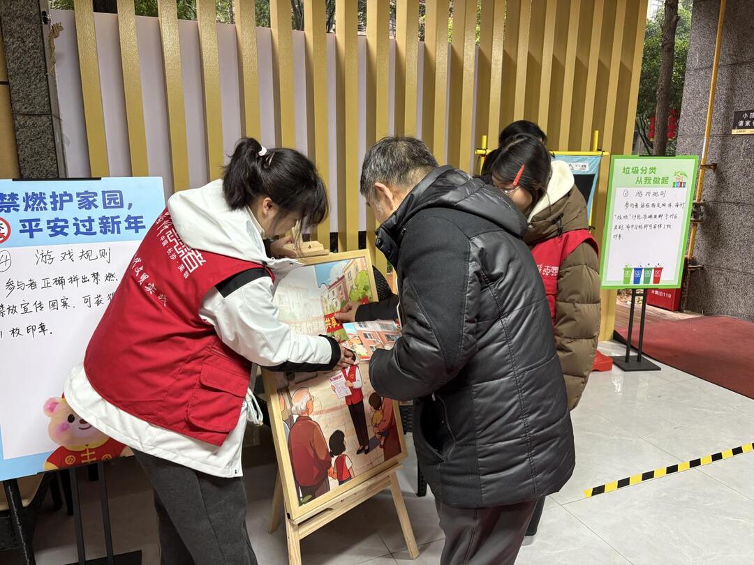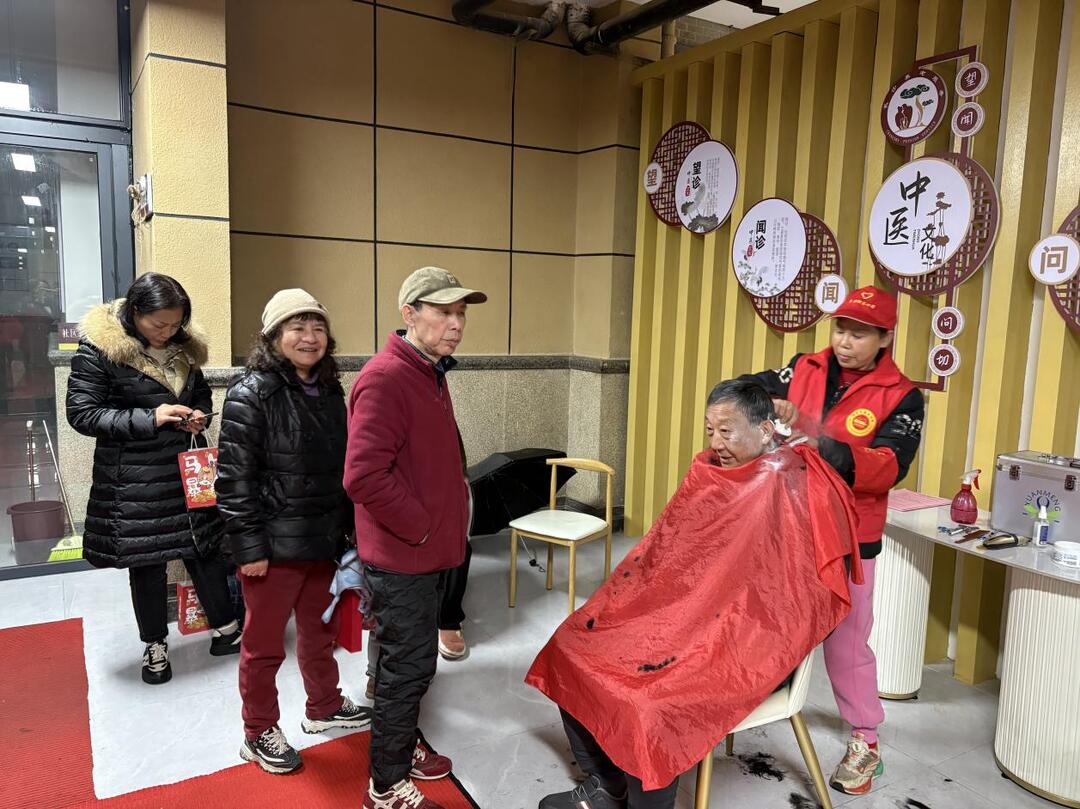 便民服務(wù)區(qū)暖意涌動、人氣十足。專業(yè)理發(fā)師志愿者為老年朋友提供免費義剪服務(wù),嫻熟的技藝和貼心的服務(wù)贏得陣陣贊譽;禁燃禁放宣傳區(qū)擺放著安全手冊,志愿者重點講解春節(jié)期間安全注意事項和禁燃禁放規(guī)定,進一步強化居民安全防范意識,讓便民服務(wù)直達居民身邊。