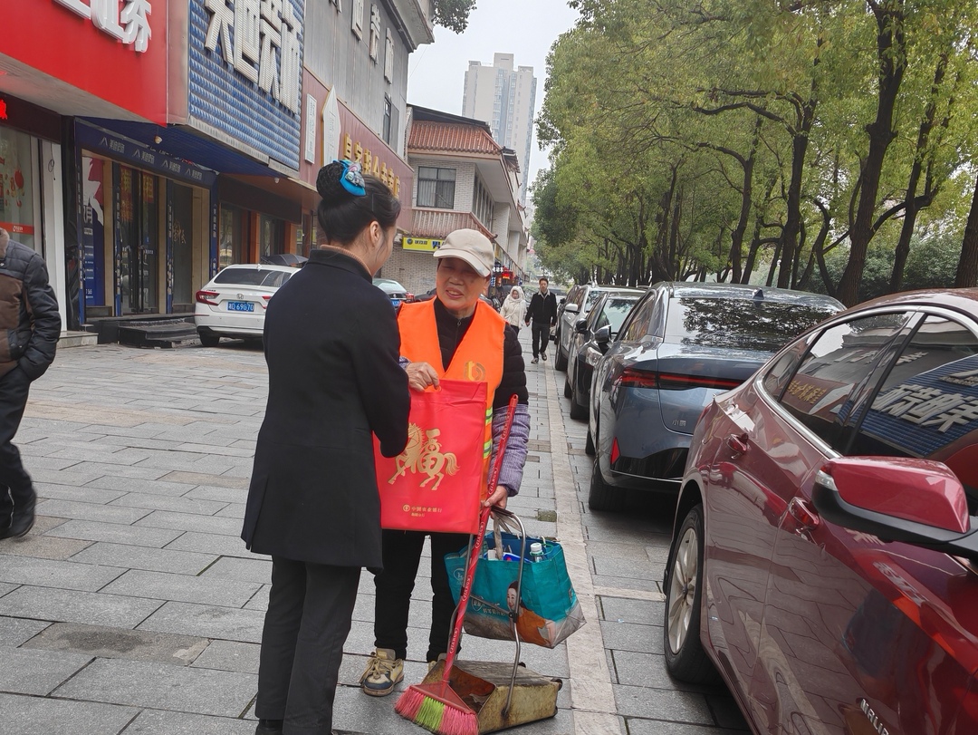 高新支行尤其關(guān)注在節(jié)日期間仍堅(jiān)守崗位的戶外工作者,組織了黨員先鋒隊(duì)和青年志愿者,帶著裝滿“?!弊?、春聯(lián)、掛歷、暖寶寶等實(shí)用物品的“暖心包”,走上街頭,為轄區(qū)內(nèi)的環(huán)衛(wèi)工人、快遞小哥、外賣騎手等送上誠摯的節(jié)日慰問。